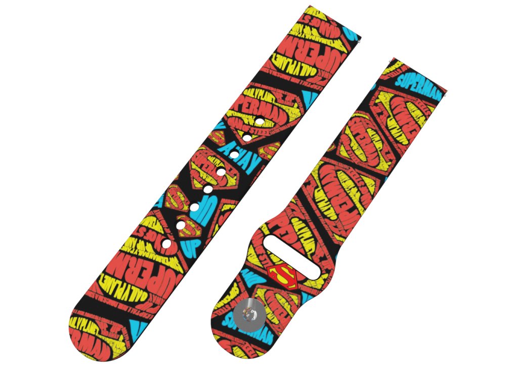 Potištěný univerzální řemínek naší vlastní výroby ve velikosti 22 mm s designem "SUPERMAN - NÁPISY" pro obvod zápěstí 15 - 23 cm.