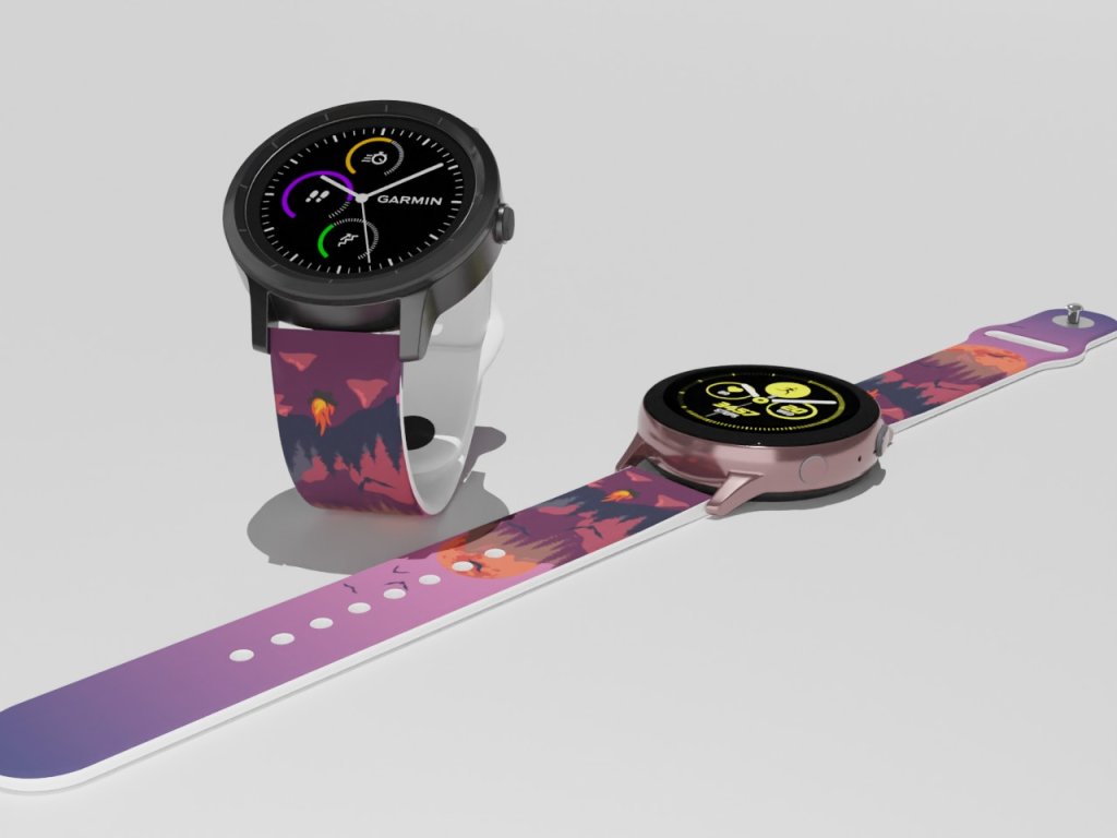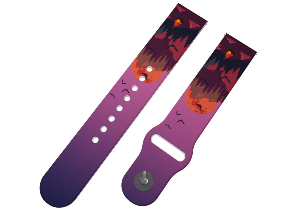 Bílý náhradní řemínek pro chytré hodinky s celopotiskem noční horské krajiny. Nádherné tóny fialové nám dovolí snít a prožívat tenhle nádherný okamžik.