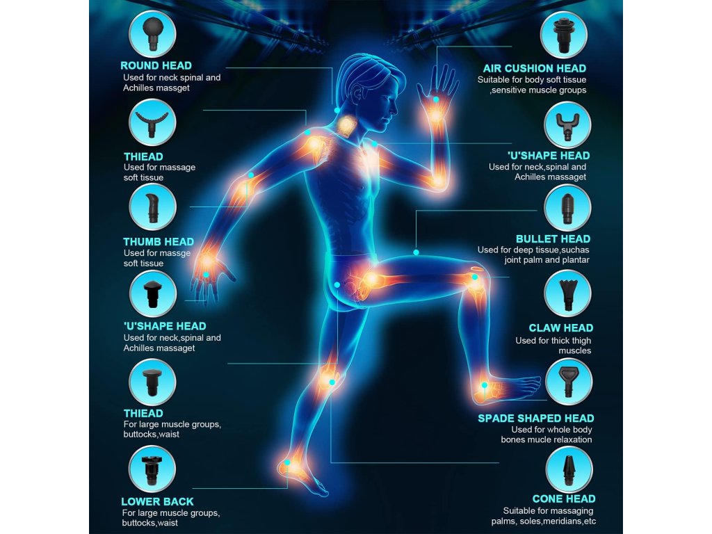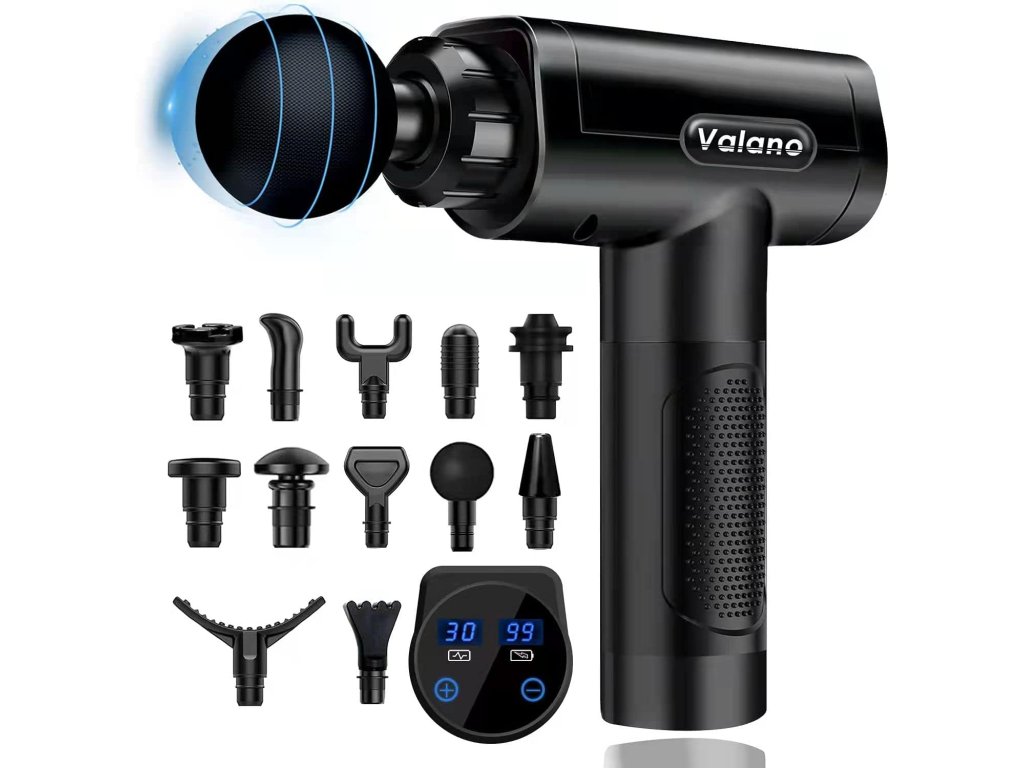- 12 hmotností: masážní přístroj Valano hloubkové tkáně masážní přístroj s 12 náhradními hlavami, snadné a rychlé odstranění a nasazení během sekundy, praktický design vám umožní dosáhnout jakéhokoli svalového tréninku. To vám poskytne další relaxační masážní zážitek.