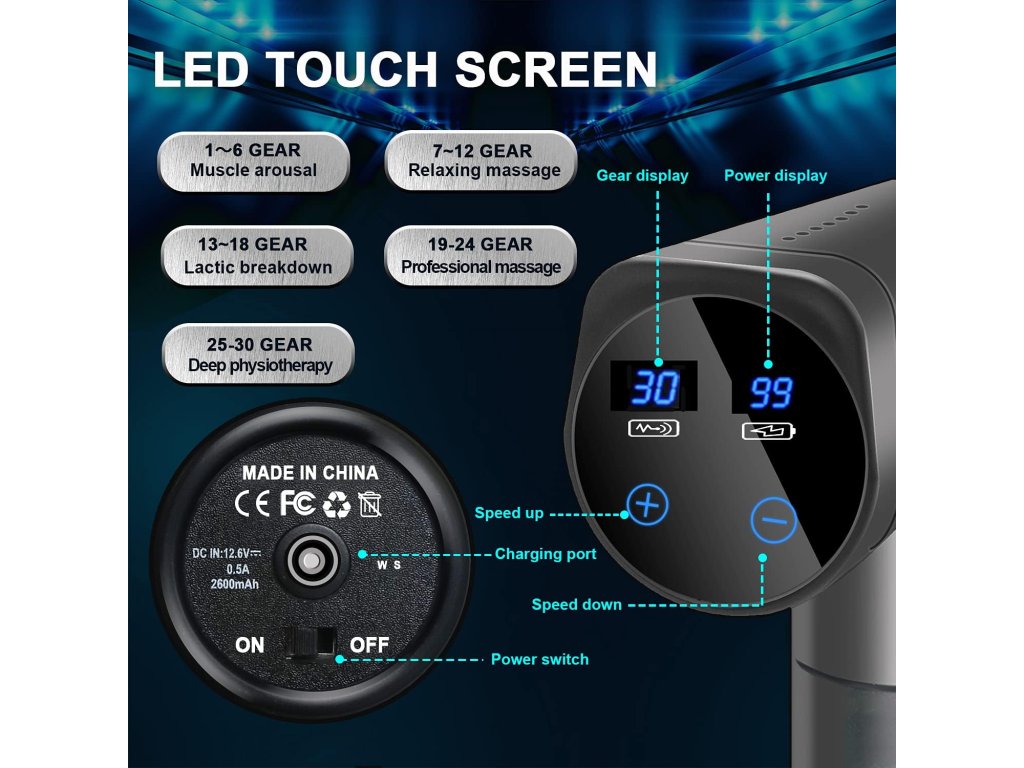 - 30 nastavitelných stupňů rychlosti: Ruční masážní přístroje Valano nabízí 30 různých rychlostních stupňů až 3200 ot/min. Naše hloubková masážní pistole má amplitudu 12 mm, čímž může perkuse proniknout hluboko do hluboké tkáně.