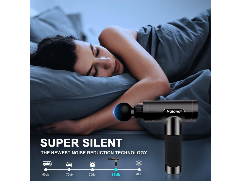 - Výkonný a velmi tichý: Vychutnejte si hloubkovou masážní pistoli a spravujte své svaly v relaxačním tichu. Masážní přístroj Valano byl vyvinut s tichým motorem. S technologií potlačení šumu 35 dB a motorem s vysokým točivým momentem, který vytváří příjemné prostředí.