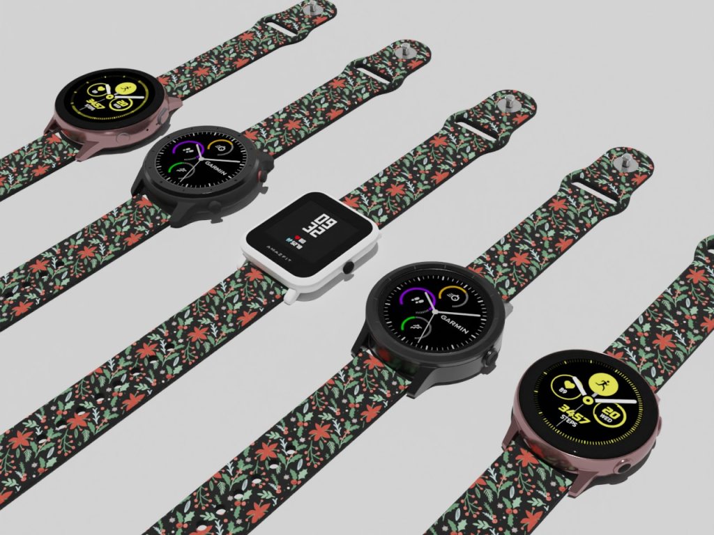 Černý náhradní řemínek pro chytré hodinky s květiny vánoční hvězdy.