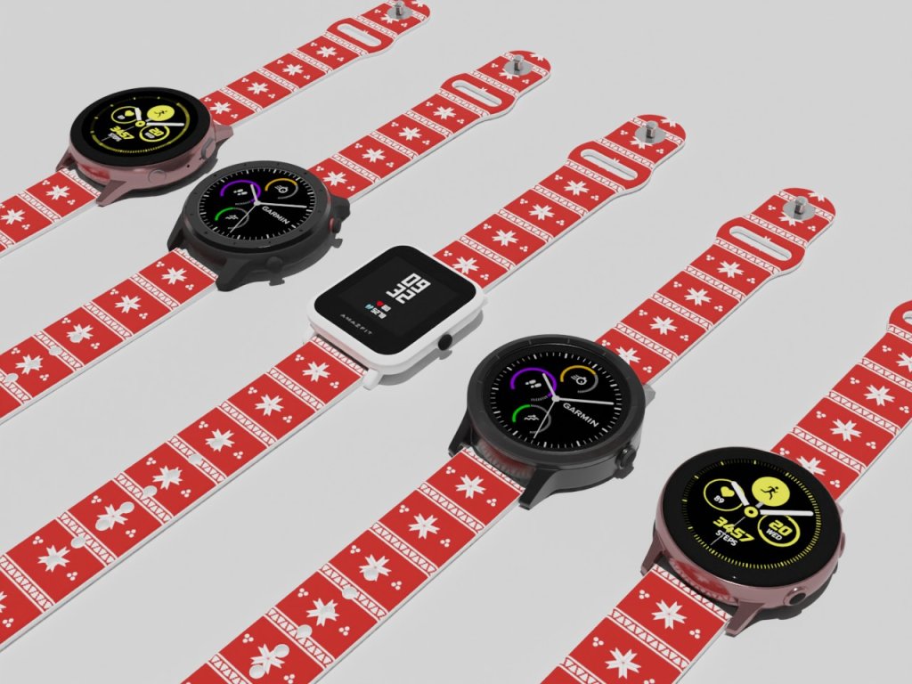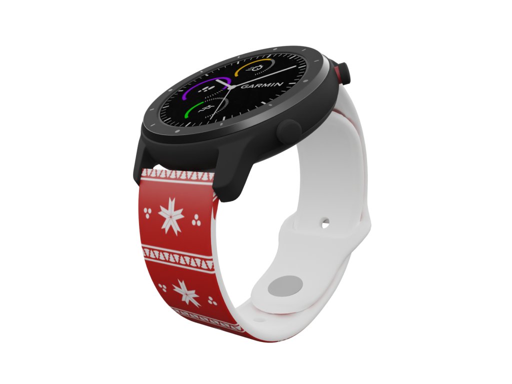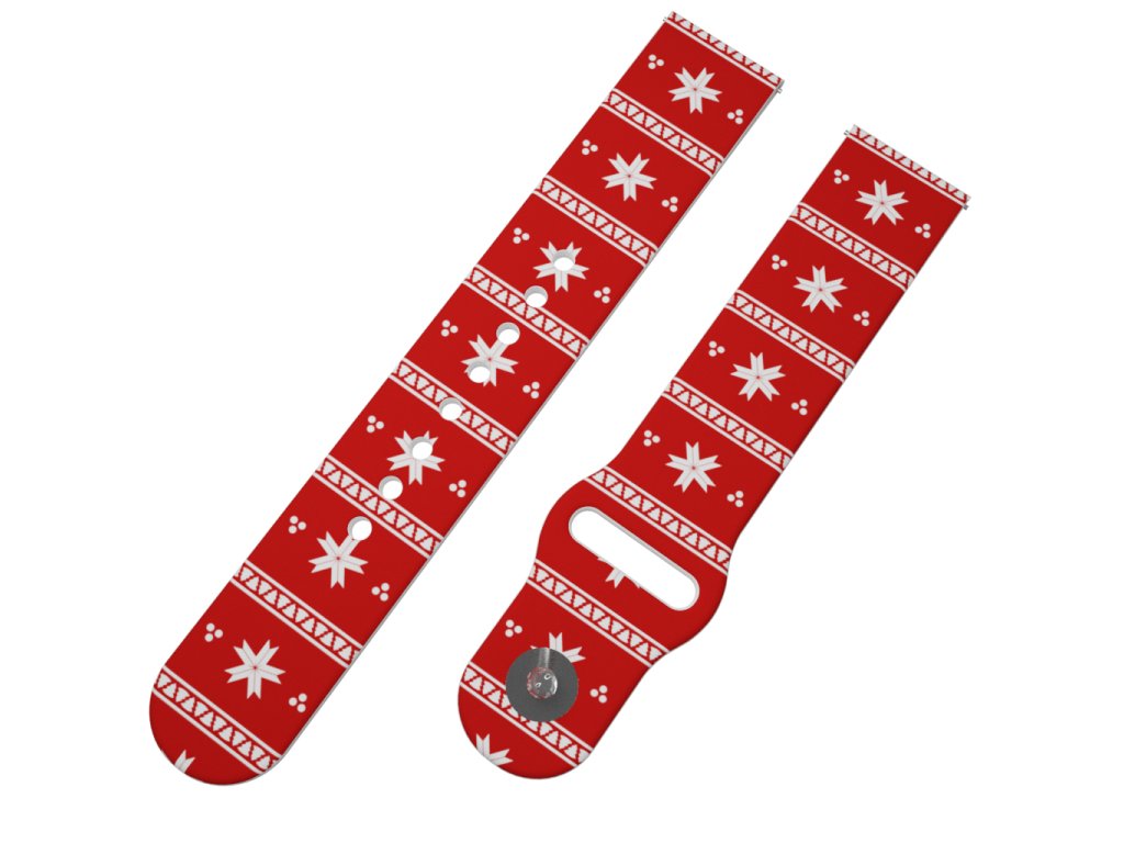 Bílý náhradní řemínek pro chytré hodinky s červeným potiskem vánočního motivu. Slaďte si vánoční svetr i s páskem na hodinky.