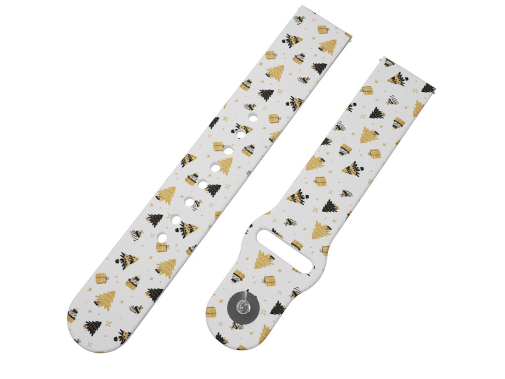 Bílý náhradní řemínek pro chytré hodinky s potiskem vánočních stromečků a dárečků.