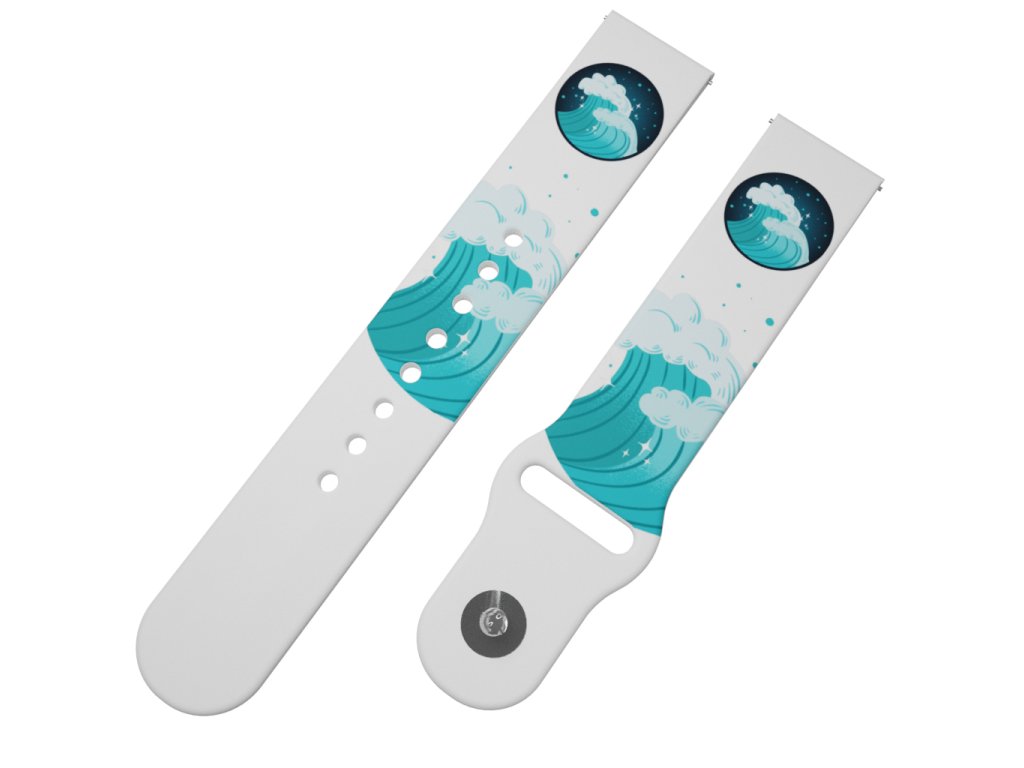 Potištěný univerzální řemínek naší vlastní výroby ve velikosti 22 mm s designem "VODA"pro obvod zápěstí 15 - 23 cm.