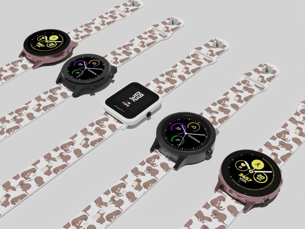 Bílý náhradní řemínek pro chytré hodinky s potiskem roztomilých vyder.