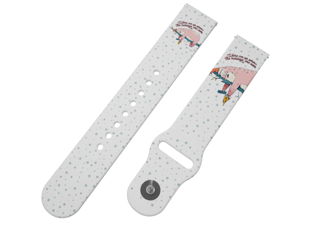 Bílý náhradní řemínek pro chytré hodinky s potiskem vánočního lenochoda.