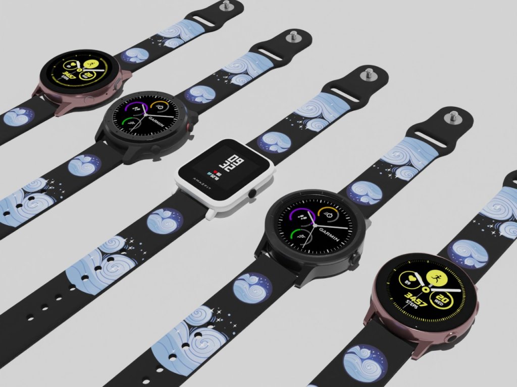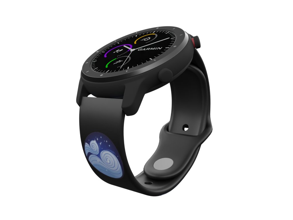 Černý náhradní řemínek pro chytré hodinky s potiskem živlu vzduch.