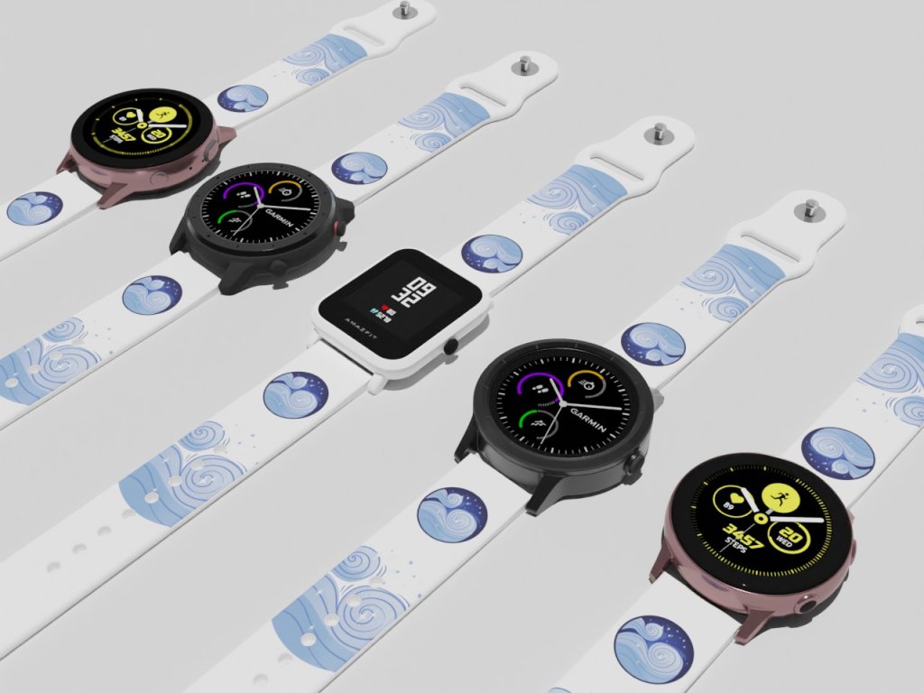Bílý náhradní řemínek pro chytré hodinky s potiskem živlu vzduch.