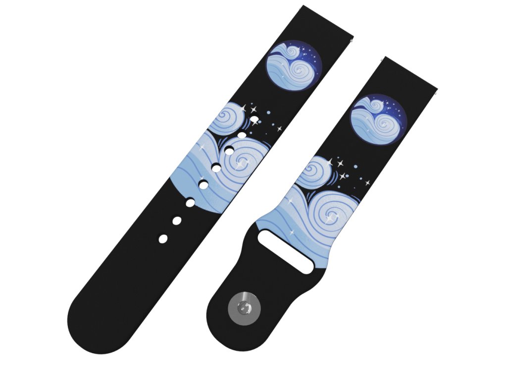 Černý náhradní řemínek pro chytré hodinky s potiskem živlu vzduch. Nechte si čechrat vlasy ve větru.