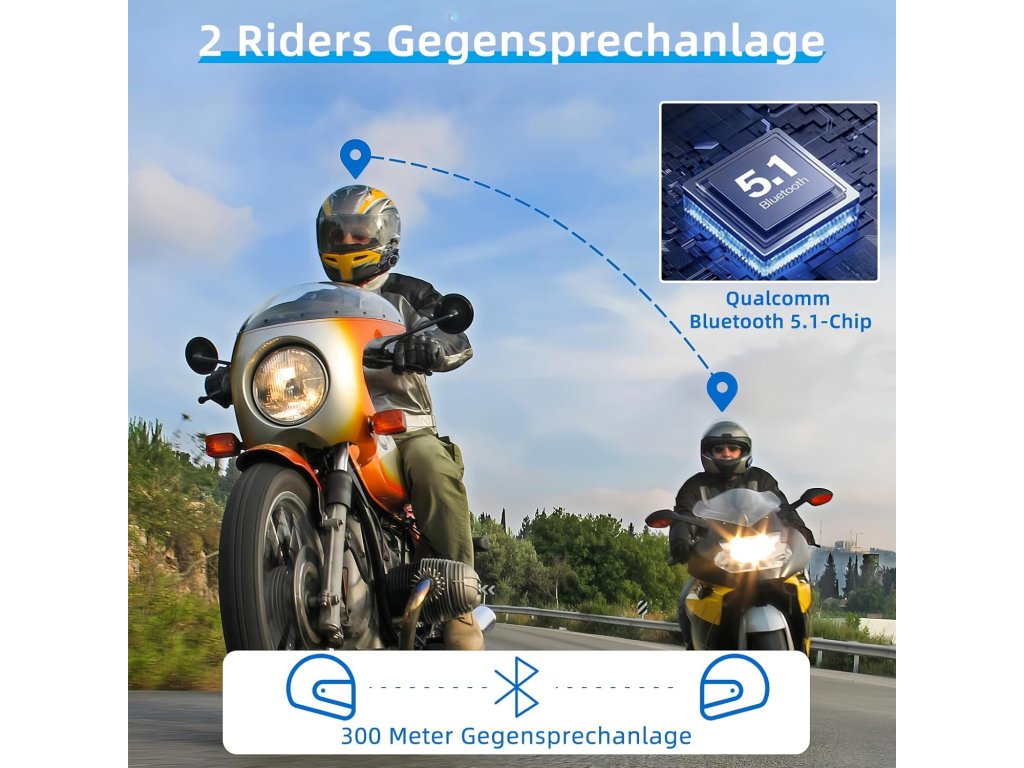 - 【Čip Qualcomm 5.1 & hlasové ovládání】 Vybaven Bluetooth čipovou sadou Enterprise od Qualcomm, nabízí T2-Intercom výkonný přenos signálu a rychlé párování. S připojeným mikrofonem aktivujete dvojitým kliknutím na tlačítko napájení Siri/Google Assistant – ovládejte navigaci GPS, přehrávání hudby nebo telefonování bez ruky, zatímco budete mít přehled o streamování