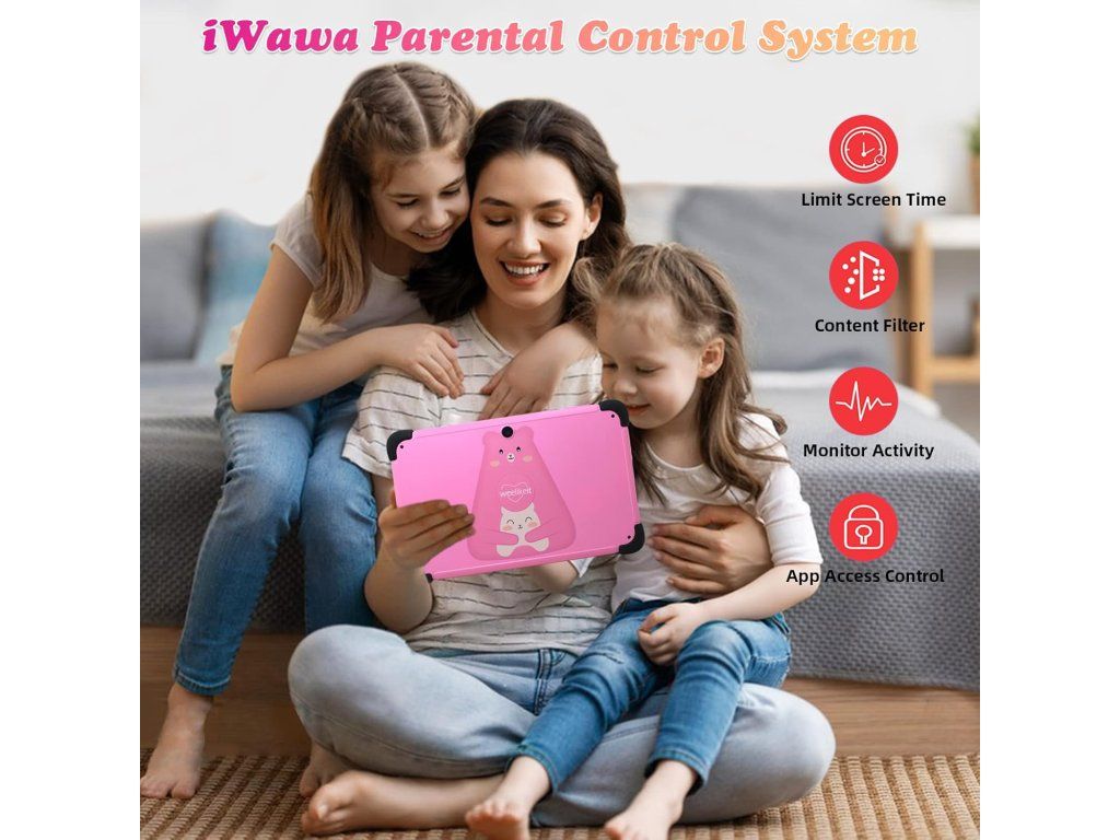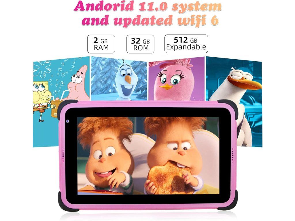 Tablet je vybaven systémem Android 11 a předinstalovanou dětskou aplikací (např. iWawa), která umožňuje rodičovskou kontrolu a přístup k výukovým i zábavným aplikacím. Součástí balení je také ochranné pouzdro a stylus (pero) pro pohodlné ovládání.