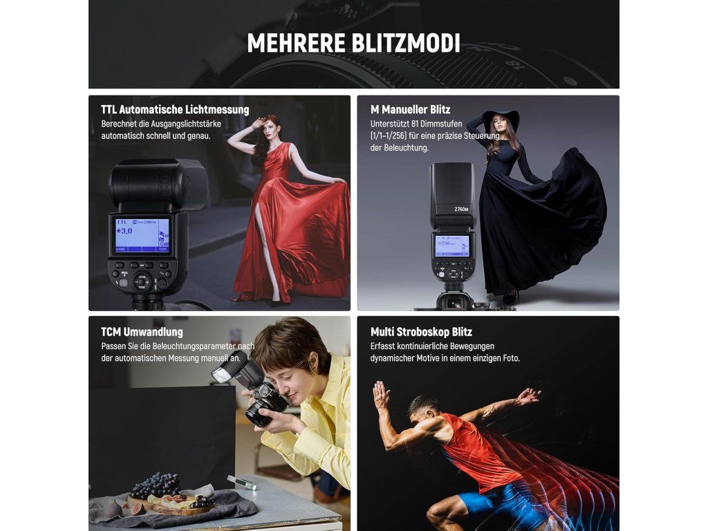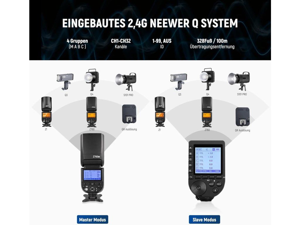 NEEWER Z760-S je výkonný externí blesk (speedlite) určený pro fotoaparáty Sony. Nabízí pokročilé funkce jako TTL měření, vysokorychlostní synchronizaci (HSS) a bezdrátové ovládání přes 2,4 GHz systém.