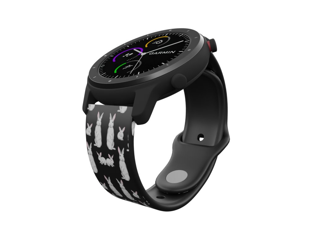 Černý náhradní řemínek pro chytré hodinky s potiskem zajíčků.
