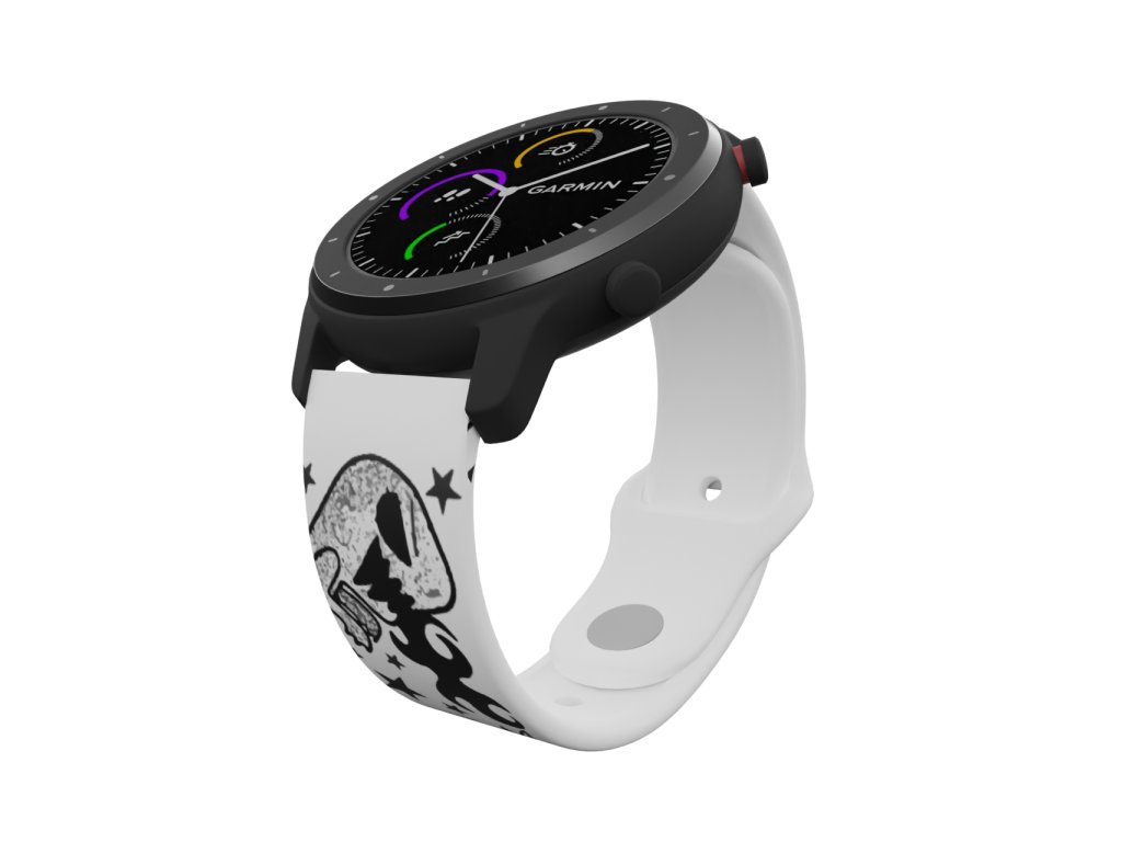 Bílý řemínek s černou grafikou, která je na první pohled nenápadná, ale přesto kontroverzní.